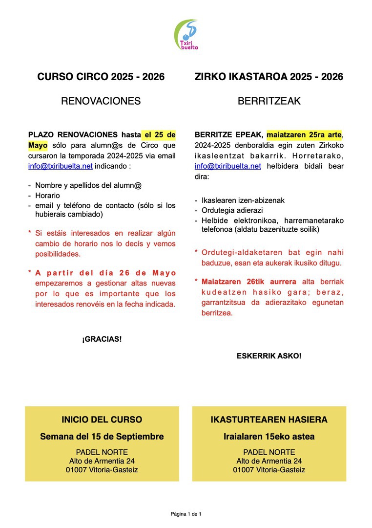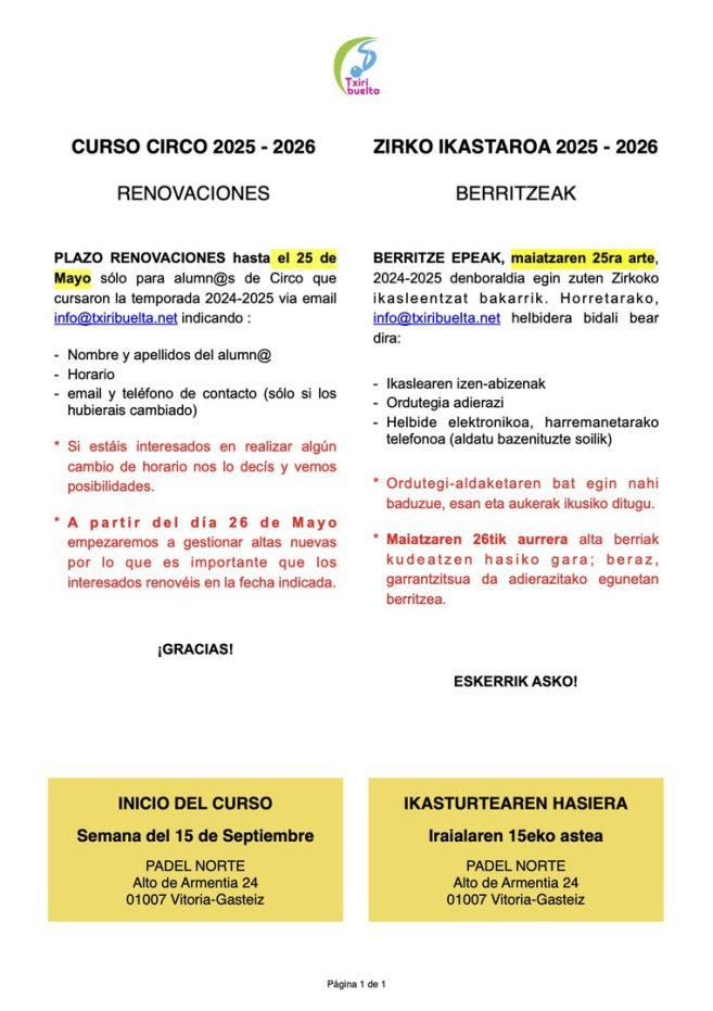 TXIRIBUELTA Xabier Larrimbek eta Ortzi Acostak buruturiko ekimena da, Arabar hiriburuaren baitan kirol akrobatikoen garapena eta zirku-kultura zabaltzea eta sustatzea bilatzen duena. Ekimen hau Padel Norteren kirol instalazioen barruan garatzen da, zentroaren baitan eskaintzen diren serbitzuen artean sinergia sortuz, eta modu honetan inguru kirolari eta osasuntzu batez gozatu ahal izateko.