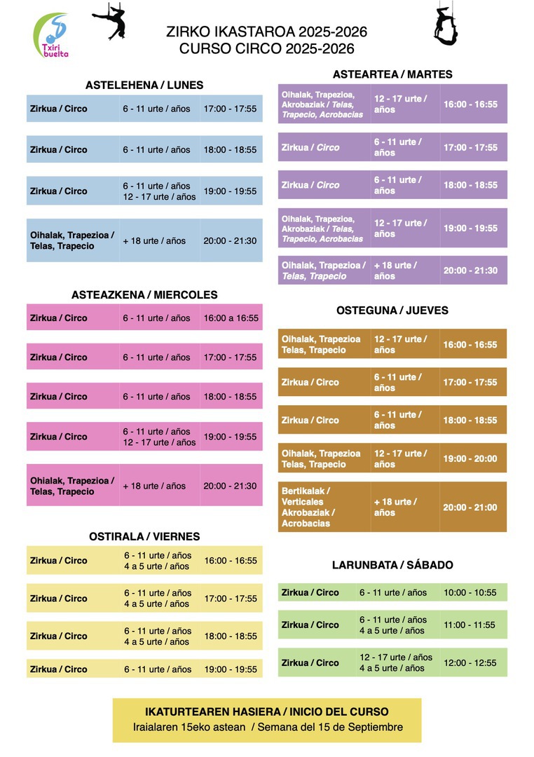 Ikastaroa Irailaren 15ko astean hasiko da.