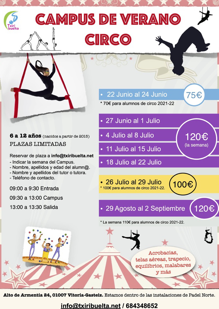 No pierda la oportunida para que sus hij@s disfruten, aprendan y desarrollen sus capacidades en nuestros Campus de Circo!